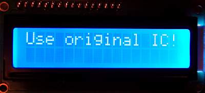 That confirms what I'd said earlier. Without an original chip the data area would be blank, so you get the "Use Original IC!" message on the screen (see my previous photo).